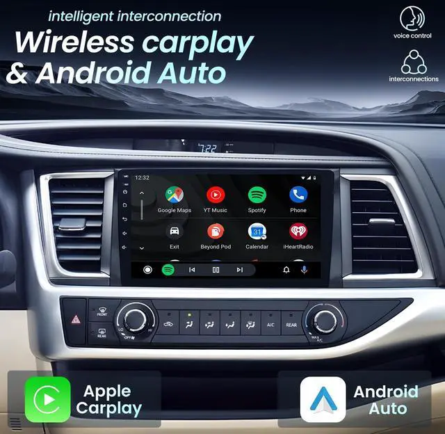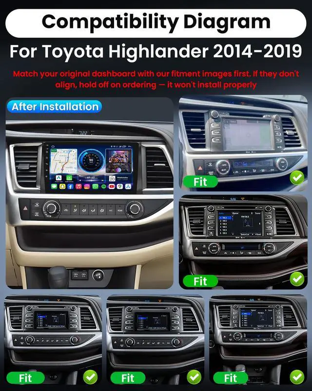 Car Radio Stereo suitable for Toyota Highlander 2014 2015 2016 2017 2018 2019. Support Android 12 system. 4 Core CPU, 2GB RAM 64GB ROM ^^ 10.2 -inch 1280*800 HD touchscreen offers superior image clarity and wide viewing angles, Fully laminated screen technology for seamless installation ^^ Built-in CarPlay and Android Auto(Wired/Wireless), 5GWiFi Connection, DSP/16 EQ audio customization, preset FM/RDS radio stations. Satellite positioning GPS navigation(Online/Offline) ^^ Built-in Bluetooth 4.2, Hands-free calling. Music and video playback, Supports multiple music/video formats. Support steering Wheel Control, 1080P Backup Camera ^^ If you have questions about installation and use, please find us via Chat, where we have a professional, friendly team on hand to provide support within 24 hours