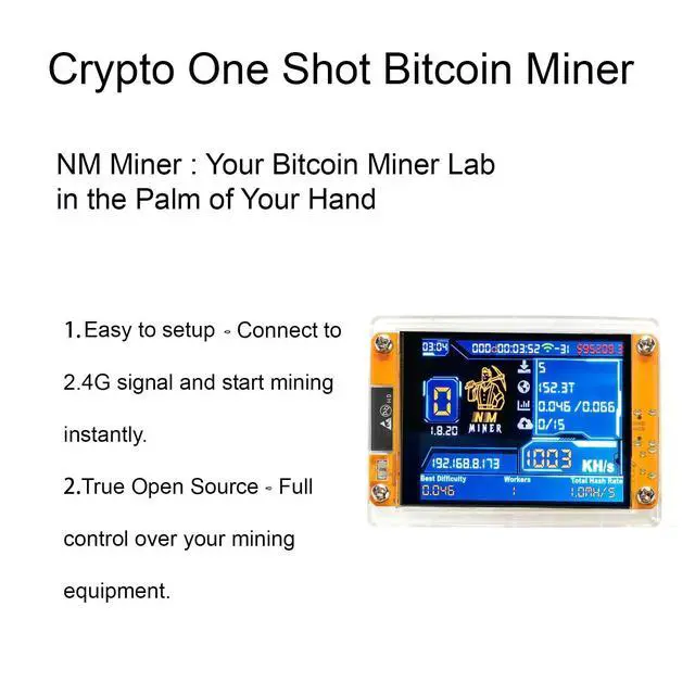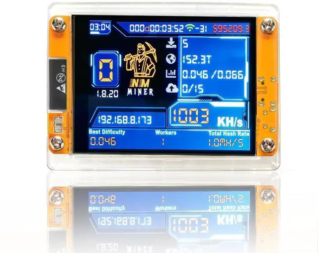 Smart & Interactive DisplayKeep track of your mining activity effortlessly on the integrated 2.8 -inch mini smart screen. Watch real-time updates on hashrate, network difficulty, mined blocks, and system statusbringing transparency and engagement to crypto mining.