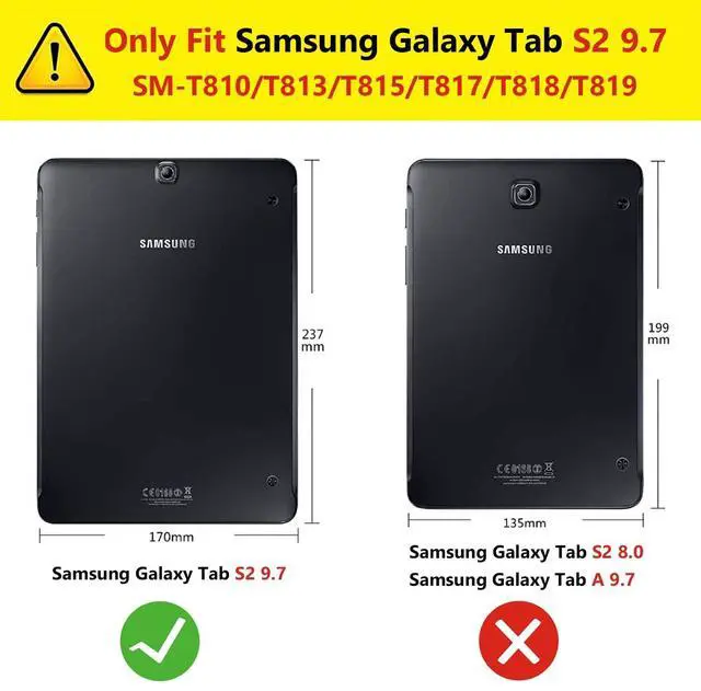 Compatibility: All New & Only Compatible Samsung Galaxy Tab S2 9.7 inch 2015 Release Tablet Model SM-T810/T813/T815/T817/T818/T819. (NOT Suit for any other model & This case designed without built-in screen protector).