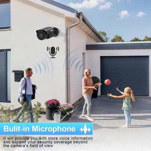 POE CAMERA OVERVIEW: This ultra HD 8MP 4K PoE camera captures clear video images, with a 2.8 mm wide-angle lens offering a 110 field of view. It has a built-in microphone for one-way audio, IP67-rated metal housing that can withstand harsh weather, (NO SD Card Supported) ^^ This camera supports both DC12V and POE power supply. When using POE technology, a single Ethernet cable is sufficient to transmit both data and power, connecting to a POE NVR or POE switch. This eliminates the need for additional power cables, making installation simpler and more efficient.