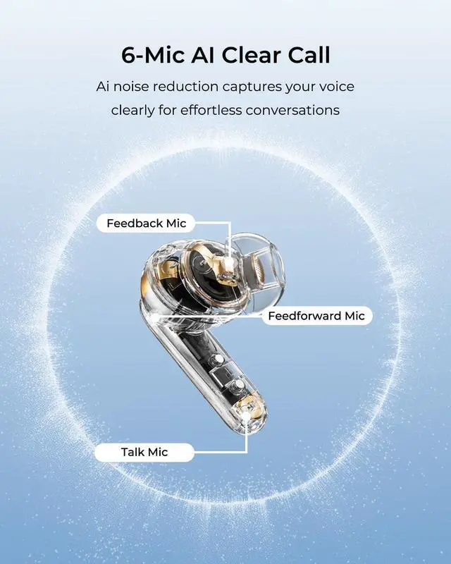 Hybrid Active Noise Cancellingwegear Bluetooth headphones offer up to 45 dB of noise cancellation, effectively blocking out the noise of subway trains during your commute. Stay focused on your favorite music without any external distractions ^^ 6-Mic AI Clear Calls6 beamforming mics and AI noise reduction to capture your voice clearly and reduce ambient noise. Whether on a busy street, in a cafe, or on the subway, enjoy crystal-clear calls effortlessly ^^ Premium Hi-Fi Stereo Soundwegear wireless Bluetooth earbuds feature powerful 12mm drivers that deliver deep, punchy bass and clear, detailed treble for an immersive audio experience.