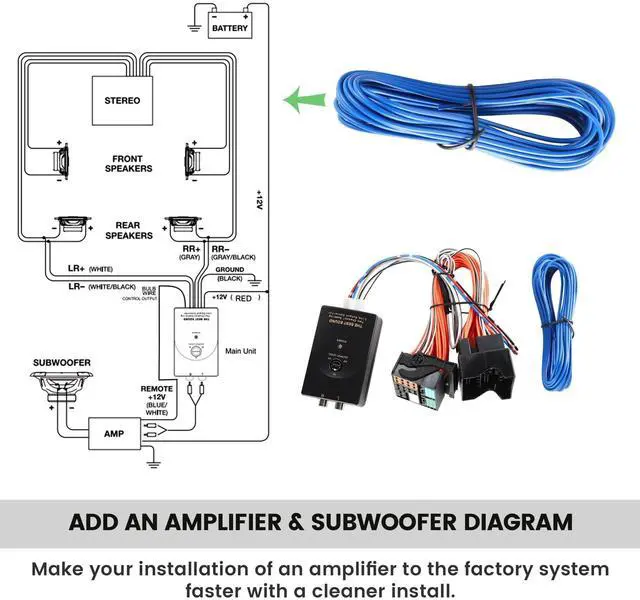Volkswagen: 2016- 2019 Beetle, 2015- 2017 Golf Series, 2016- 2020 Jetta, 2016- 2020 Jetta GLI (with 6.5 inch color display), 2016- 2019 Passat, 2016- 2017 Tiguan ^^ Add amp adapter for vw allows for the installation of an aftermarket amp for the addition of a subwoofer to your factory system; this amp adapter provides a connection for one set of RCA cables to provide an audio signal to the external amplifier ^^ Speaker Wire to RCA Line Output Converter provides one pair RCA output, a power wire for the remote amplifier turn on connection; use this adapter to make your amplifier mount to the factory system with a faster and cleaner installation ^^ Easy to