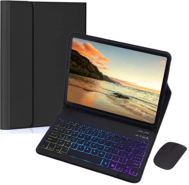 AnMengXinLing Keyboard Case for Fire HD 10/10 Plus Tablet 10.1 inch 2021/2023 (11th/13th Gen) with Mouse, Rainbow Backlight Magnetic Detachable Keyboard Cover with Pencil Holder (Black)