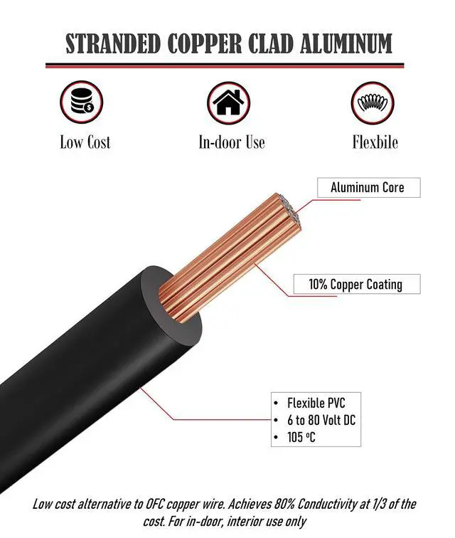 ^^ IMPORTANT: DO NOT use for building / household 110 / 220 V ac wiring. It uses (6 to 80 volts). This 16 gauge speaker wire 12V wire is perfect for auto wire, car wire, automotive wiring. ^^ This 16 AWG wire is widely applied in automotive electrical wiring, rc toys, batteries, lamps, and electrical appliances. It is also ideal for motor cables, digital 3D printers, remote control applications, electric toys, robots, and electric DIY projects. Automotive electrical wire, Car Radio Audio Speaker, Home Theater, Trailer, low voltage LED strip light.