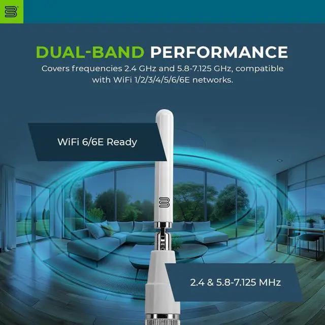^^ DUAL-BAND PERFORMANCE: Covers frequencies 2.4 GHz and 5.8 - 7.125 GHz, compatible with WiFi 1/2/3/4/5/6/6E networks.