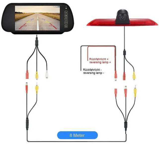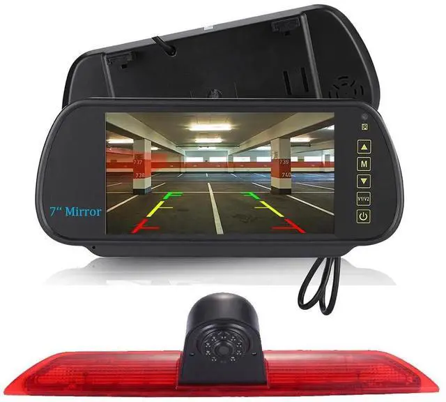 Transporter van motorhome car roof brake light rear view camera set with 7 inch rear view mirror screen monitor HD night vision waterproof. ^^