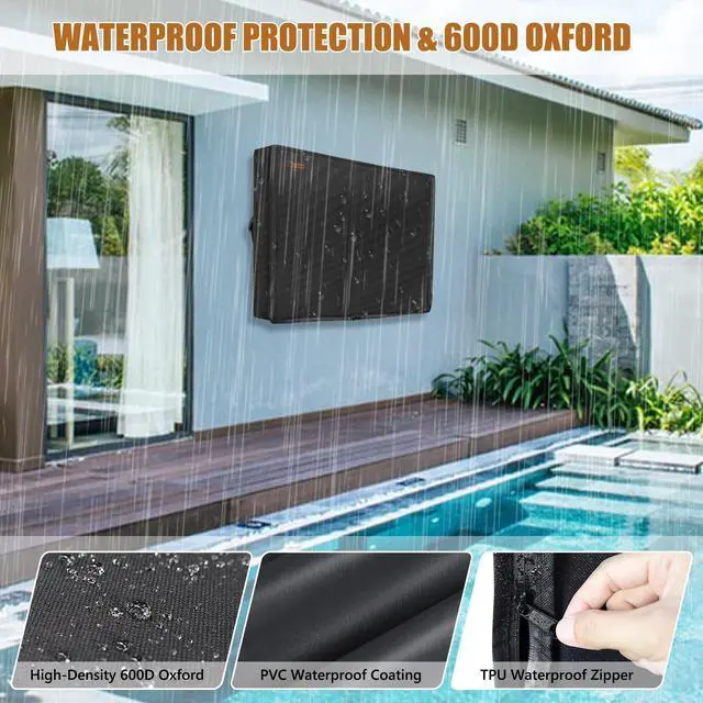 ^^ Durable All-Season Material: Our outside TV cover with zippers is made from heavy-duty 600D Oxford material, ensuring exceptional durability. It effectively protects your TV from wear, scratches, and harsh weather conditions, offering reliable year-round protection.