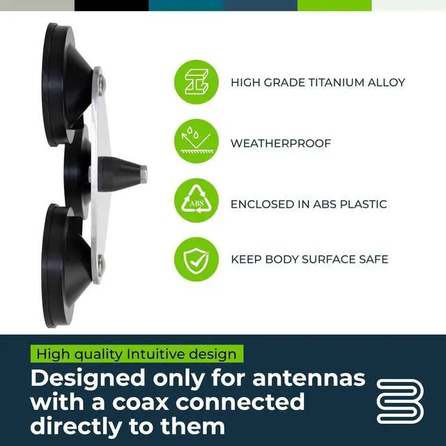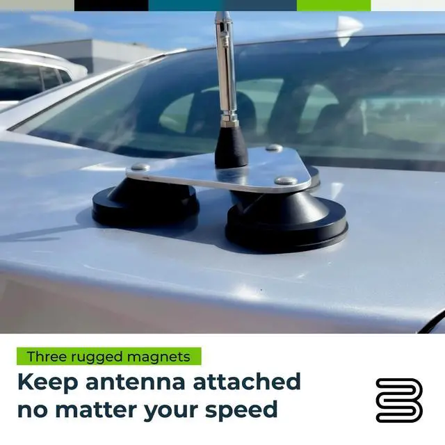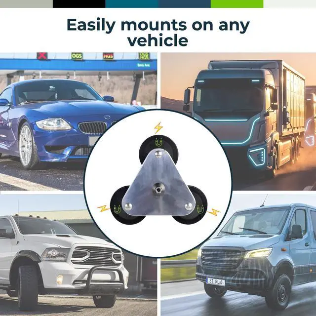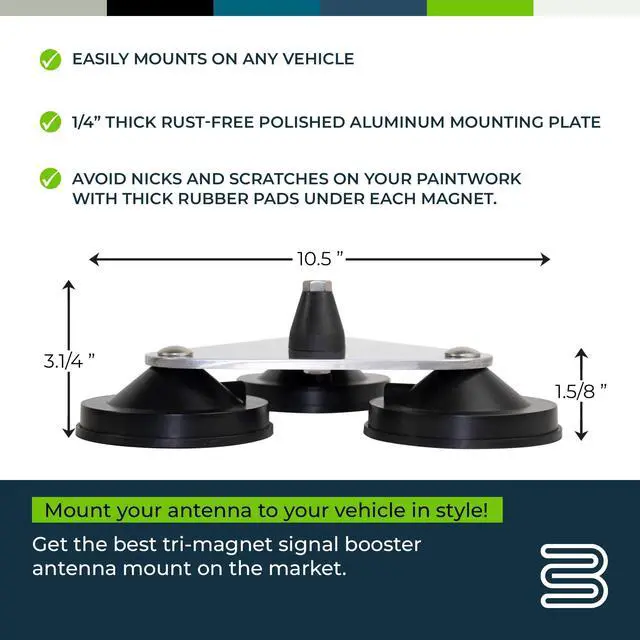 Bolton Technical Tri-Mag Antenna Mount ^^ 3/8" x 24 Threaded Antenna Mount ^^ 4" Ceramic 8-Pole Magnets with Rubber Pads