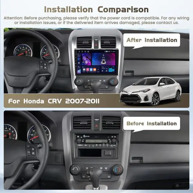 Compatibility]: For Honda CRV 2007 2008 2009 2010 2011 car radio stereo. Please send us your car's model, produce year and a car dashboard picture by chat, we will help you to check if this car stereo is suitable for your car and equip all the cables for you. If you discover missing parts or damaged products upon delivery, please contact us promptly for resolution ^^ [Wireless
