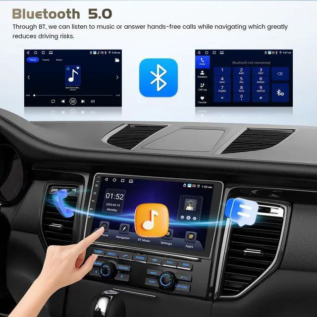 CarPlay & Android Auto]: Supports connect your phone with Bluetooth (Wireless). You just need to get into your car and your smartphone will automatically connect. You can easily make/answer phone calls, listen to music, GPS navigation and you can also be able to wake up the voice assistant to operate apps. (Not Support Wired Connection) ^^ [32