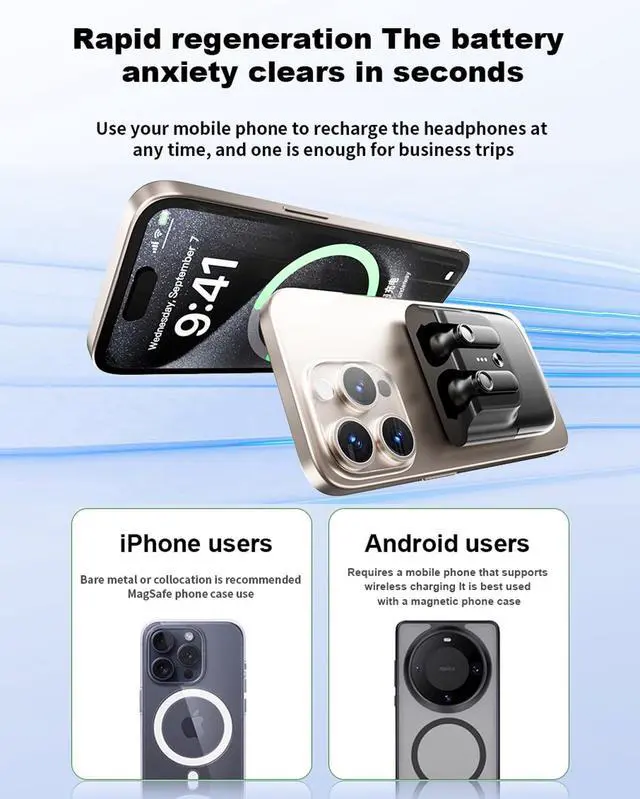 Ultimate Portability: Wireless Earbuds with Case are compact elegance. The slim, durable case fits pockets effortlessly, while the magnetic hold keeps your phone and earbuds united as a single, sleek unit. Why Choose Our Earbuds? Never lose your earbuds againthey're always attached to your phone! Charge wirelessly, watch freely, and enjoy studioIdeal for busy professionals, fitness enthusiasts, or multitaskers, these Blue Tooth Ear Buds are your all-in-one audio solution. Elevate your tech life with smart charging, magnetic convenience, and versatile utility.
