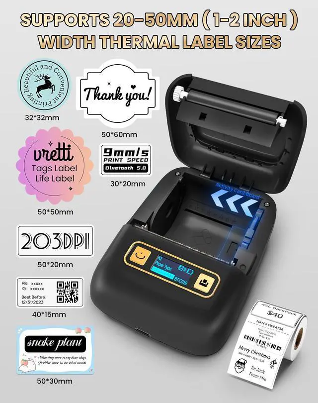 Note: This 2 inch label makers has a print range of 20mm~58mmmaximum print width of 58mm ^^