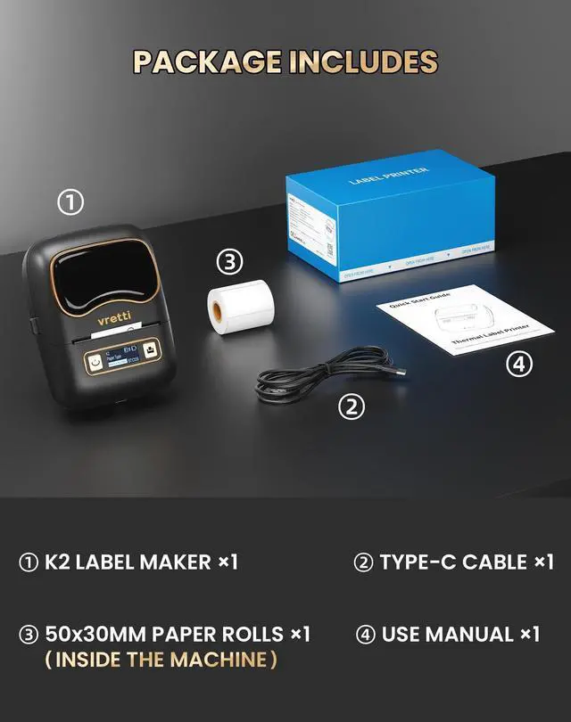 Wide Use: K2 waterproof label maker has a wide range of applications in everyday life. You can use it in businesses, schools, offices, retail establishments, clothing stores, jewelry stores and homes. This address label maker machine brings great convenience to our work and life, making it a reliable little helper in our daily lives ^^