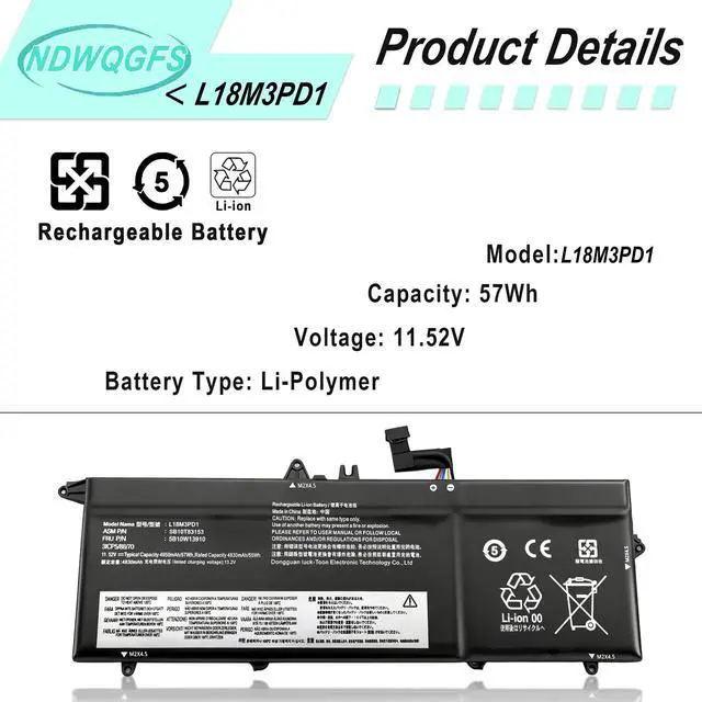 57Wh High Capacity & Reliable Power This 57Wh battery with an 11.52V voltage provides dependable, long-lasting power to extend your Lenovo ThinkPad's productivity between charges. ^^ Guaranteed Compatibility for ThinkPad Models Designed as a direct replacement for the ThinkPad T14s, T490s, and T495s series. Replaces part numbers including L18L3PD1, L18M3PD1, L18C3PD1, 02DL013-016, and 5B10W13909-13912. ^^