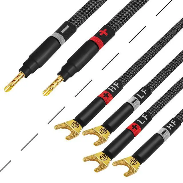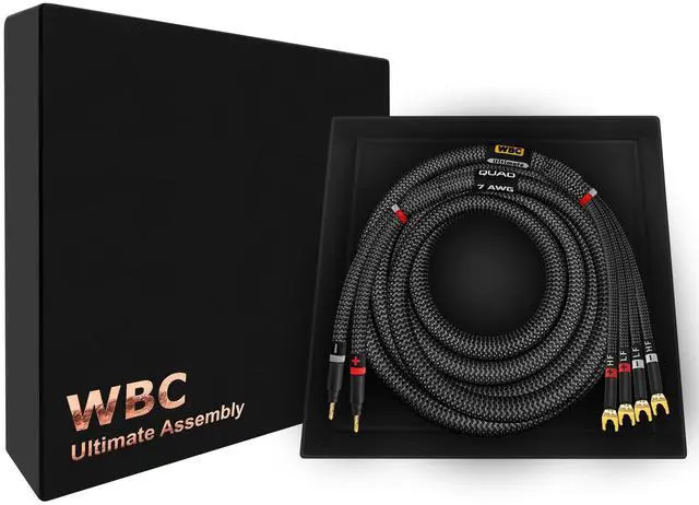 The high-end packaging, makes these a great gift for any Audiophile or Music Lover who will appreciate handcrafted, high quality audio cabling. The braided Tweed cloth jacket and embroidered labeling will compliment your high-end gear quite tastefully; this is truly The Ultimate speaker cable. ^^ At WBC we only use the highest-grade connectors for these audiophile cable assemblies. Eminence 3 micron, 24K Gold plated, audiophile-grade, 4mm (standard diameter) banana plugs with a fully insulated body to prevent accidental shorting & multi-spade connectors, (compatible with 8mm and 6mm binding posts), provide superior abrasion & corrosion resistance and unrivalled performance.