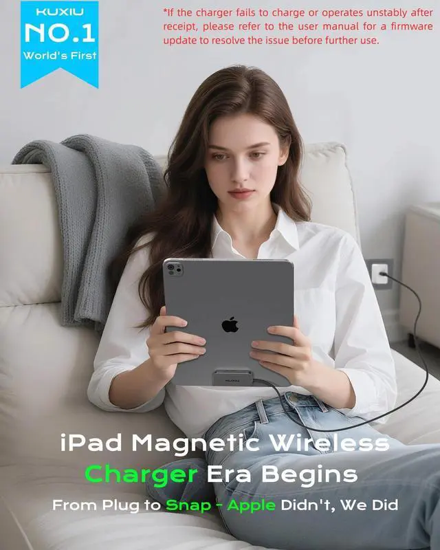 Charge for iPad: World's first magnetic wireless charger for iPad, combine PIN Smart Connector with MagSafe-style, upgrading from wired to wireless, plug to snap. Eliminates frequent plugging and unplugging, protecting your Thunderbolt port while greatly improving convenience ^^