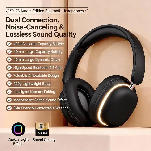 High-Fidelity Sound & Powerful Bass 40mm large drivers deliver rich, detailed audio with enhanced bass for an immersive listening experience. ^^ Bluetooth 5.3 & Dual Connection Enjoy fast, stable wireless connectivity and the ability to connect two devices simultaneously. ^^ Long-Lasting 400mAh Battery Up to 20 hours of continuous use, perfect for extended gaming sessions, travel, or daily entertainment. ^^ RGB Lighting & Foldable Design Eye-catching RGB light effects with multiple modes, plus a foldable, space-saving structure for portability. ^^ All-Day Comfort & Detachable Mic Ultra-soft ear cushions and a lightweight 200g frame ensure comfortable wear.