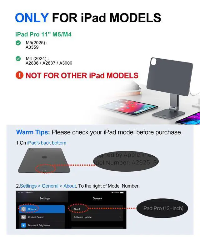 ^^ Exclusive for iPad Pro 11 M5 & M4, Foldable DesignSpecifically designed for iPad Pro 11 M5 (2025) / M4 (2024). Foldable structure makes it easy to carry, whether moving between office and home or packing for travel. ^^ Multi-Scenario Wireless iPad ChargerFrom professional design work to entertainment and learning, this wireless charger for iPad offers seamless adaptability across multiple scenarios.