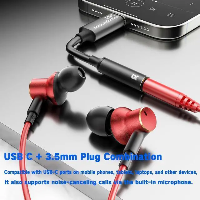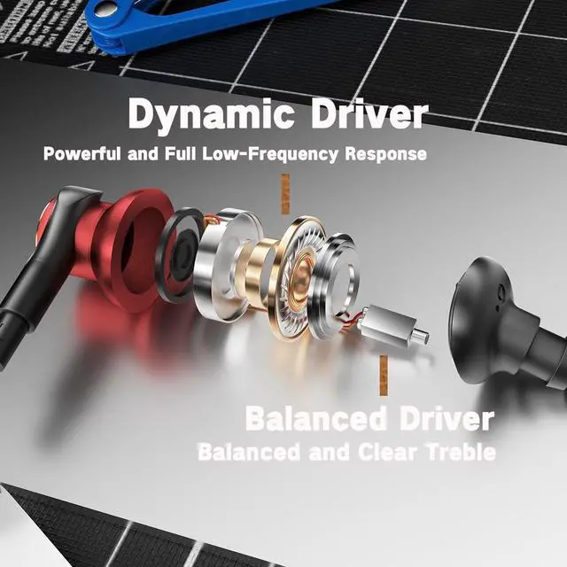 Experience immersive audio with our dual-driver wired earbudsfeaturing Dynamic & Balanced Armature drivers for deep rich bass, crisp balanced mids/highs, and authentic Hi-Fi stereo sound. Equipped with advanced call noise cancellation, they deliver crystal clear calls by blocking background distractions, perfect for work, commutes, or daily use. Comfortable in-ear design ensures a secure fit, while wide device compatibility lets you connect seamlessly to phones, laptops, and more. Reliable wired connection guarantees stable audio transmissionno lag, just pure, high-quality sound wherever you go.