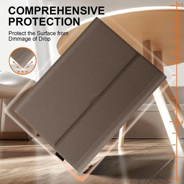 Please note: It is NOT compatible with Surface Pro 4/5/6/7/7+ or any other models. (Surface Keyboard and Slim Pen 2 are not included). ^^ NEVER LOSE YOUR SURFACE SLIM PEN 2 Features a dedicated, secure loop holder specifically designed for the Surface Slim Pen 2. Keep your stylus always attached and readily accessible for spontaneous notes, sketches, or designs. The case remains fully compatible with the Surface Pro Signature Keyboard for a seamless laptop experience. ^^ ADJUSTABLE KICKSTAND FOR OPTIMAL VIEWING Enhance your productivity and comfort. The built-in, anti-slip kickstand offers multiple stable viewing angles, perfect for typing, presenting, watching videos, or using the touchscreen. The sturdy construction ensures your device stays firmly in place on your desk or lap. ^^ PREMIUM MICROFIBER LEATHER & FULL PROTECTION Crafted from high-grade microfiber leather that offers a luxurious feel and exceptional durability. The exterior is scratch-resistant and easy to clean, while the soft interior lining safeguards your device's screen and body from scratches and dust. The magnetic closure enables auto sleep/wake functionality to conserve battery. ^^ PRECISE ENGINEERING & RELIABLE SUPPORT Engineered with precise cutouts for uninterrupted charging and connectivity.