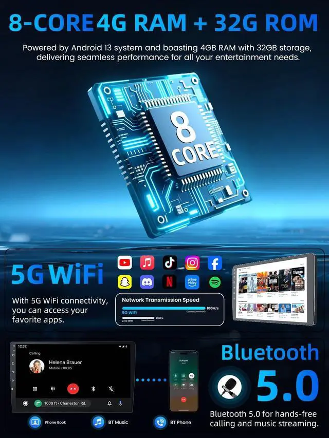 A smarter, safer and more fun way to use your phone in the car, and keep you stay focused, connected and entertained ^^ Bluetooth 5.0 & FM Radio & HIFI Built-in Bluetooth function, support hands-free calls and wireless music playback, making your driving safer and more convenient;