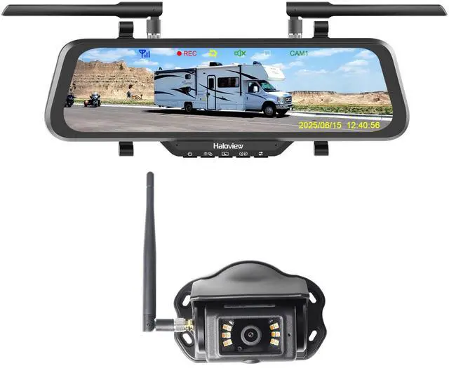 The BT10 is a versatile RV rear view mirror backup camera system that combines a 1080P wireless RV backup camera with a built-in dashcam for complete front and rear coverage. ^^ Wide