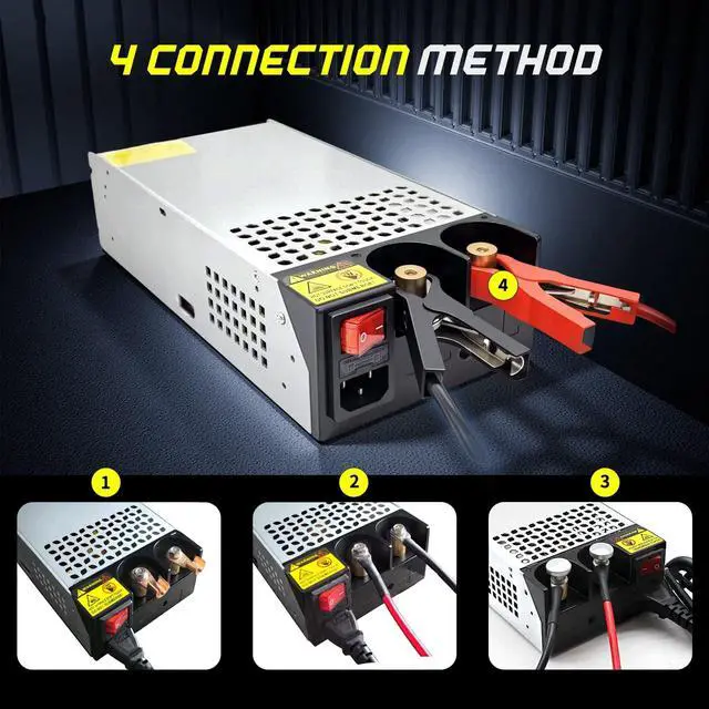 • NEW VERSION AC TO DC CONVERTERNew Upgrade 800w converter build with Imported Aluminum alloy shell ,Built-in wire integrated design, Dual power connection methods, Very convenient for 12V devices with clamps, Our 66 amp power supply come with ul power cord ,12v converter with switch ,wire lugs,metal clip and screw.Super convenient for devices with clamps. You can clamp to the two cylindrical contacts directly. It is a patent design of 12v dc power converter.