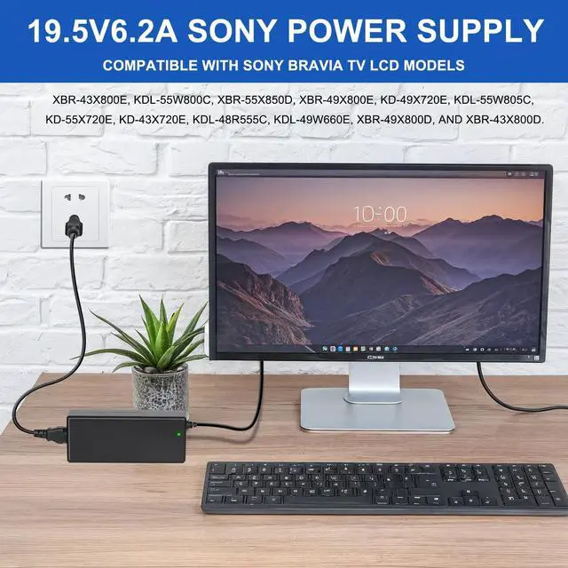 Power up your Sony television with this essential 19.5V AC adapter power cord. Designed for seamless compatibility with multiple Sony TV models including the KDL series (55W805C, 55W800C), KD series (55X720E, 43X720E), and XBR series (43X800E, 43X800D, 49X800E, 49X800D, 55X850D). This power cord delivers reliable performance to keep your entertainment center running smoothly. Whether you need a replacement for your original cord or want a backup power solution, this adapter ensures consistent power delivery to your compatible Sony TV model. Skip the hassle of compatibility concerns - this power cord is specifically engineered to work with the listed Sony television models, providing the exact voltage your TV needs for optimal performance.