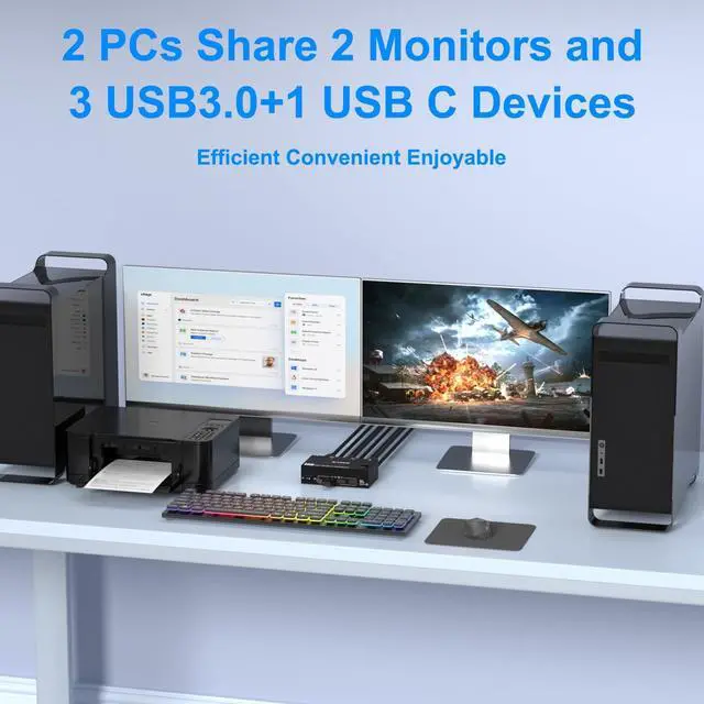 Note: Final resolution is also subject to graphic cards, monitors, cables and adapters. ^^ HDMI KVM Switch 3 3.0 + USB C s Dual monitor KVM switch allows 2 computers share 2 monitors and 4 USB devices, which can recognize keyboard, mouse, printer, scaner, USB flash drive and other