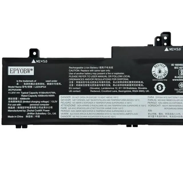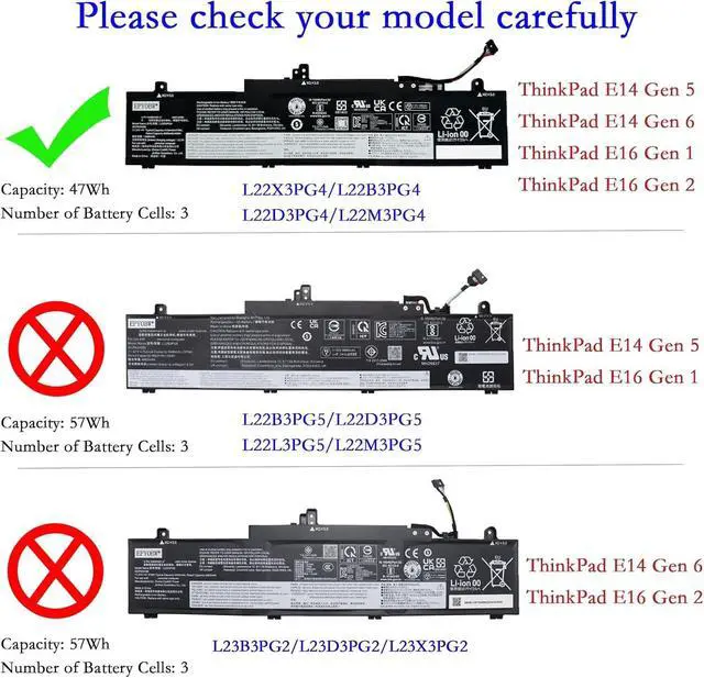 NOTE: There are three different types of batteries compatible here ( L22X3PG4 47Wh, L23X3PG3 57Wh and L22B3PG5 57Wh), please open the back of the laptop to confirm your battery before ordering. ) ^^ Purchase Skills Please open the back cover of the laptop before ordering and make sure that the original battery model is consistent with the listing. After getting the battery, please install the battery correctly, make sure that the battery connector is firmly connected to the laptop motherboard, and use the original charger to charge the laptop. Discharge the new battery to 5% (not 0%), then charge and cycle 3-4 times to wake up the new battery. ^^ EPYOBW Promise All EPYOBW's batteries are certificated by UL/CE/FCC/RoHS. Our batteries are tested by strict quality control standards to ensure that the capacity is true, stable current, low self-discharge. And we also have short circuit, overheat, and overload protections. We are confident in the performance of replacement batteries and professional service.