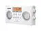 Features: PLL Synthesized tuning System. 200mm ferrite AM antenna - provides unmatched AM reception 10 memory presets (5 AM, 5 FM). rotary volume control rotary tuning control auto seek station stereo/mono selector switch headphone socket 3.5 mm aux-in socket. Dc jack (Adapter not included) backlit LCD. Sleep timer radio data system (RDS) function with radio text, station name and auto clock time. Alarm with humane wake system (HWS). battery life indicator. Ac power adapter (included) Dimensions ( w x D x