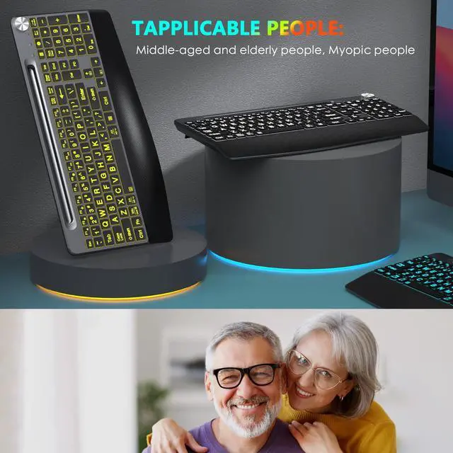Large Print Backlit Keyboard- JOYACCESS Large, bold letters combined with a bright, customizable backlight make typing effortless in any lightingperfect for low-light work, vision challenges, or simply avoiding eye strain. Bright, even illumination with color-changing options and adjustable brightness; enhances visibility and aesthetics.