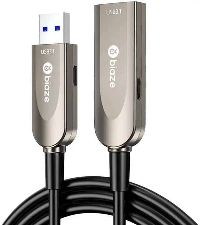 Active Optical USB 3.0 ExtenderUSB Active Optical extension cables are made of premium fiber glasses, much slimmer and lighter, transmitting much more stable signal at the same time than general copper wires. Providing an easy and inexpensive way to extends the USB connection to your computer or USB peripherals ^^ 5Gbps Transmission SpeedThe maximum data transmission speed of this USB active optical extension cable is up to 5Gbps, 10 times faster than USB 2.0 cable. Our cable has advanced active optic chipset signal amplifiers to ensure uninterrupted signal transmission and stable speed when USB devices are used on this longer cable than other usb extension cable ^^ Long-distance Transmission StabilityThe long USB 3.0 extension cable can extend your device to a more convenient location to connect another USB device.