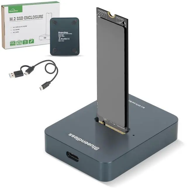 Package Contents: M. 2 Expansion Dock 1, 2-in-1 USB-A/C to USB-C Cable 1, User Manual 1