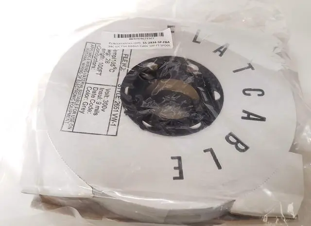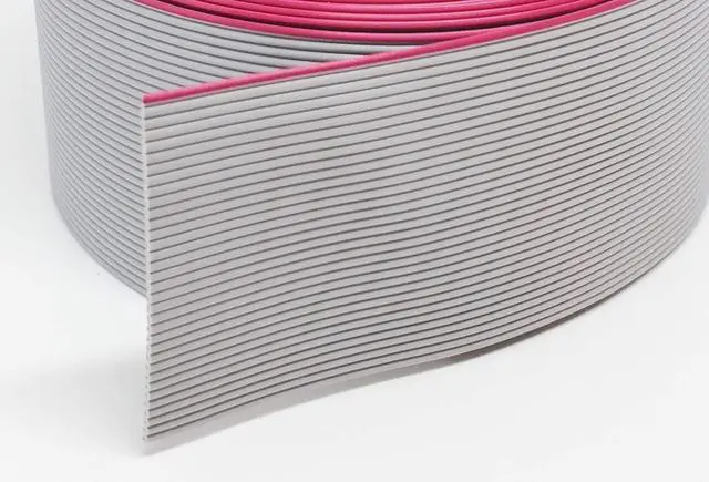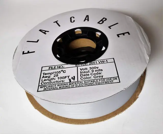 Standard 1.27 mm Spaced for 2.54 mm IDC Connectors Grey Flat Ribbon Cable 34C, 34-wire, Bulk 100-Ft Flat Ribbon Cable. General Description Use this flat ribbon cable to build your own custom cables. It is available in a number of varieties, each with a different number of conductors. It is perfect for use with insulation displacement connectors (IDC). One edge of the cable is color coded, which is conventionally used to indicate pin 1 of a cable. This wire is sold by 100-foot spool. If you want to order less than 100 feet, you can order from our per foot item.