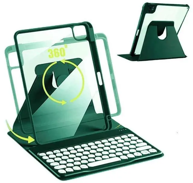 Rotation Case with Keyboard for iPad Air 11 Inch 2025 (M3) /2024 (M2) /iPad Pro 11 4th Gen 2022, iPad Pro 3rd Gen 2021, iPad Pro 11 2nd Gen 2020, iPad Pro 11 1nd Gen 2018, iPad Air 5th Generation 2022 ( 10.9 Inch), iPad Air 4th Generation 2020, Round Keys Keyboard Case Tablet 360 Degree Smart Protective Stand Keyboard case With Pencil HolderHow to