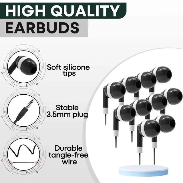 Earbuds bulk in black color: wholesale earbuds is perfect for schools, the classroom, libraries, and sharing with family and friends ^^ Comfortable to