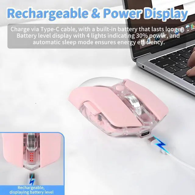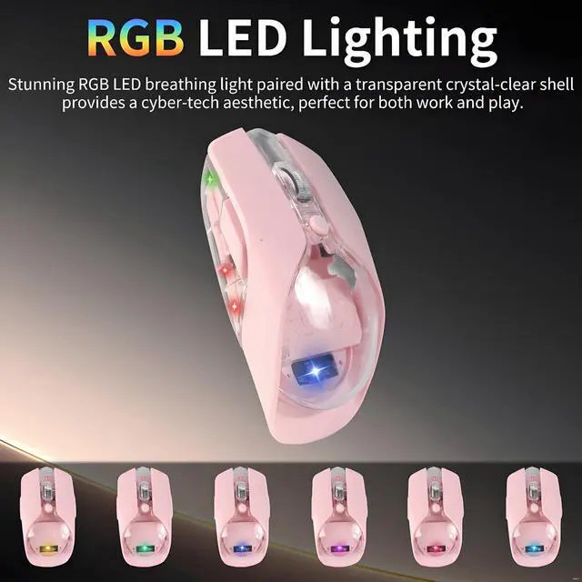 ^^ **RGB LED Lighting**: Stunning RGB LED **breathing light** paired with a transparent crystal-clear shell provides a cyber-tech aesthetic, perfect for both work and play. ^^ **Rechargeable &
