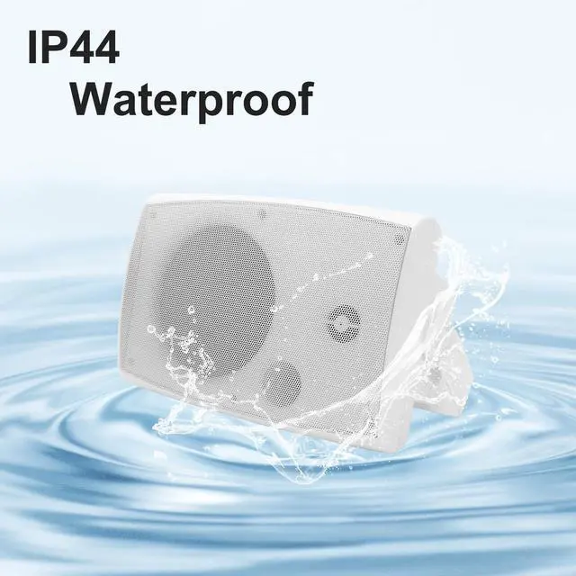 ^^ Rugged and Reliable: Built to Endure, The STUDIOFINIX Wall Mount Speaker comes with an IP44 rating, ensuring it can handle any situation. It's completely dust - proof and can withstand water spraying from all angles, making it equally suitable for indoor and outdoor use. The rugged ABS cabinet and grill not only protect the internal components but also add to the speaker's durability, promising years of reliable performance.