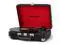 Vintage Style Made Easy: A classic black leather suitcase turntable with a rich red velvet interior and elegant silver hardware, blending retro suitcase design with modern convenience. This vintage vinyl record player adds warmth and character to any living room, bedroom, office, or dorm while staying simple and easy to use for everyday listening. ^^ Built-in Speakers, No