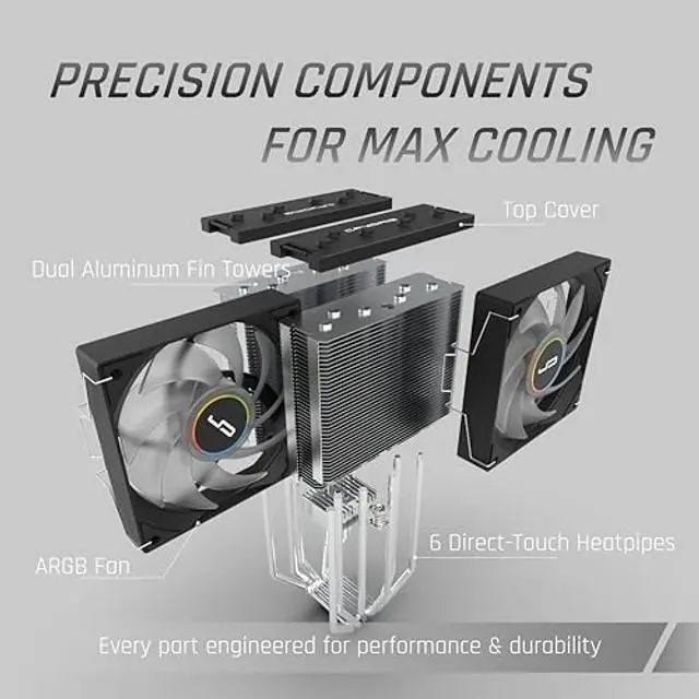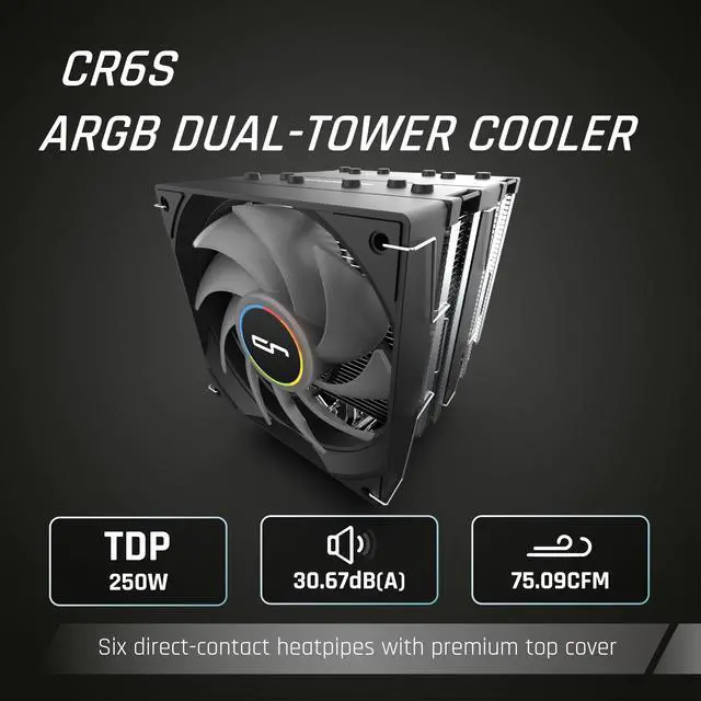 CRYORIG CR6S Dual-Tower 6 Pure Copper HEATPIPES with 2 120MM ARGB PWM Fans - AMD AM4/AM5 Intel LGA 1150/1200/1851/1700