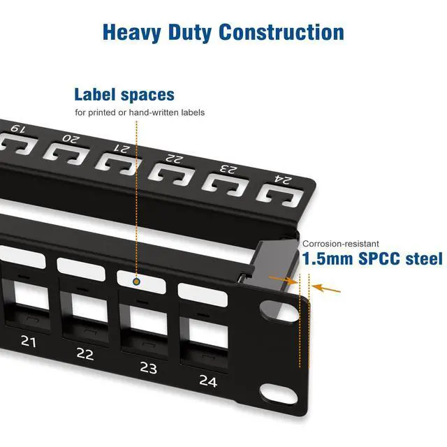 Wide-Ranging Compatibility: Patch panel 24 port supports various keystone jacks for audio, video, and data, including HDMI, CAT6, CAT5e, CAT6A, and USB, offering flexibility for all your networking and AV needs ^^