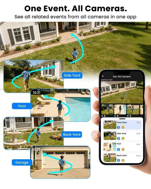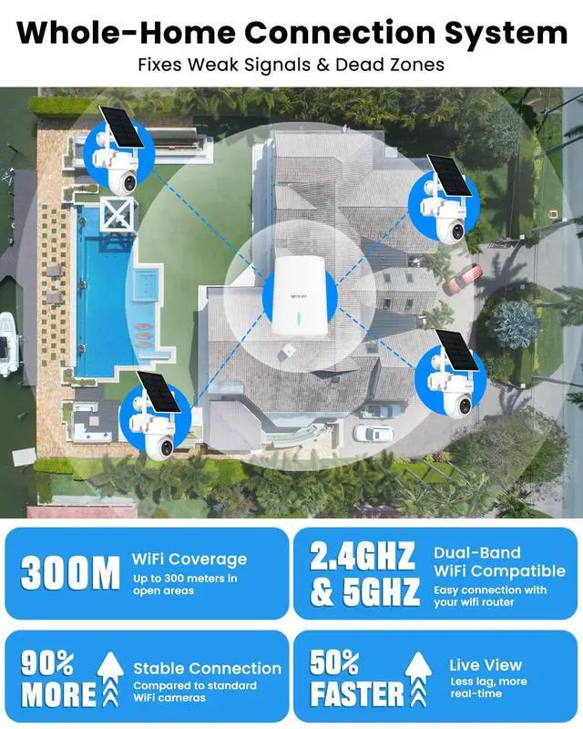 Extended WiFi Coverage up to 300m in Open AreasWith its included base station, this cameras for home security can maintain a strong, reliable connection up to 300 meters in open areasideal for large yards, gardens, garage, multiple buildings.