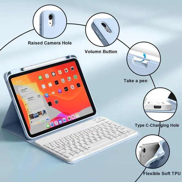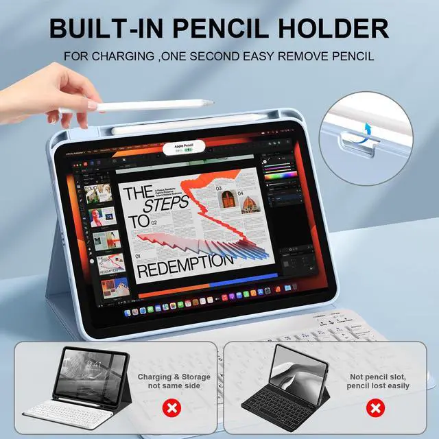 Right Side Pencil Holder]: The iPad Air 11-inch Keyboard Case has a convenient built-in pencil slot on the right side for charging, easy storage and access to your pencils. Effectively prevents falling, reducing the possibility of losing your pencil (Apple Pencil not included).