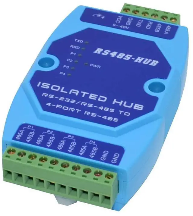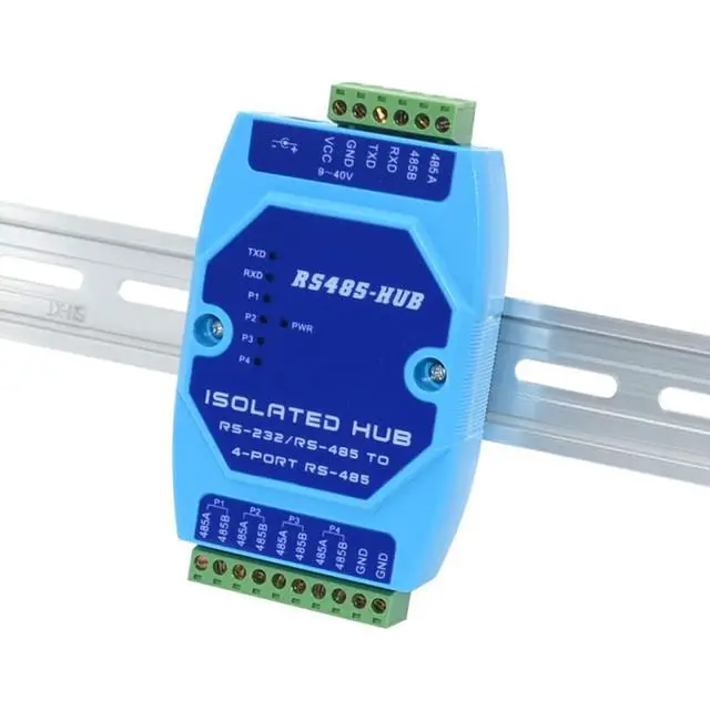 RS-485 bus splitter hub (HUB) designed for industrial automation communication, solving RS-485 bus star structure networking and solving RS-485 large system requirements in complex electromagnetic field environment. Support The transmission rate is up to 115.2 Kbps, the RS-485 interface uses opto-isolation technology, 600W lightning surge protection circuit, providing 1000V isolation voltage can effectively suppress The lightning protection and ESD protection RS-485 working mode adopts the discriminating circuit to automatically sense the data flow direction, and automatically switch the enabling control circuit to easily solve the RS-485 transceiving conversion delay problem. The RS-485 interface transmission distance is greater than 3000 meters.