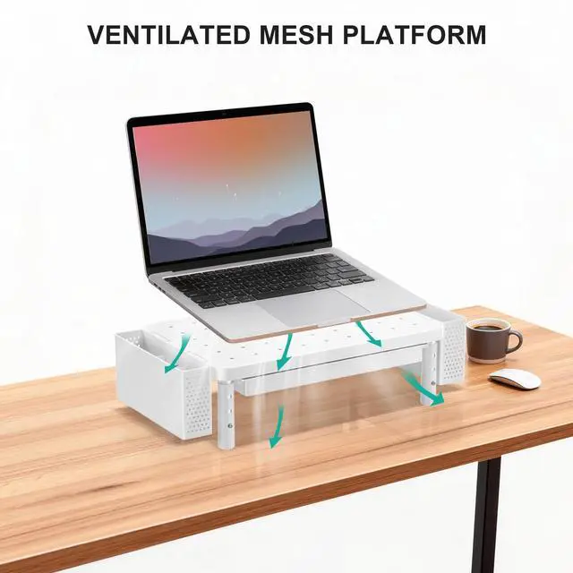 Storage Space: This laptop riser with storage with a removable drawer keeps smaller items out of sight for a more productive and tidy working environment. Pull out the drawer to have extra space underneath for office supplies such as compact keyboard, book, documents, etc ^^