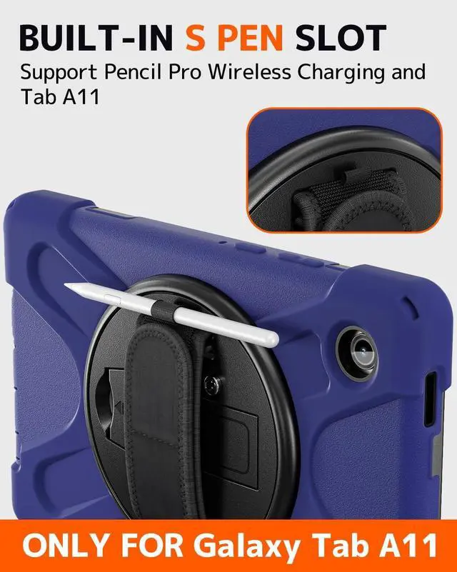 When not in use, the stand seamlessly retracts, ideal for desks, kitchens, or travel. All ports, buttons, the camera are perfectly accessible for full functionality ^^ Integrated Pencil Holder-Never misplace your Pencil. A dedicated, secure slot keeps your Pencil protected and always within reach, ensuring it remains charged and ready. Thin galaxy tab A11 bumper cover offers complete guard and functionality, making it the ideal companion for your Tab A11.