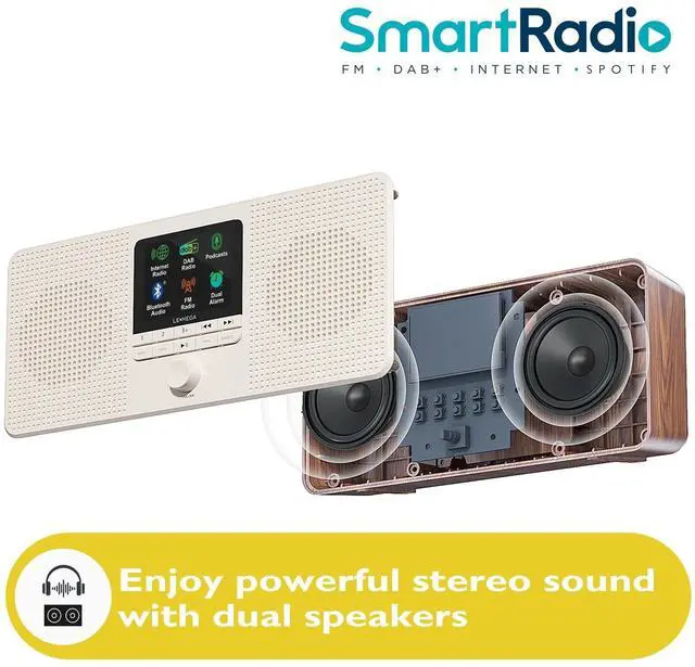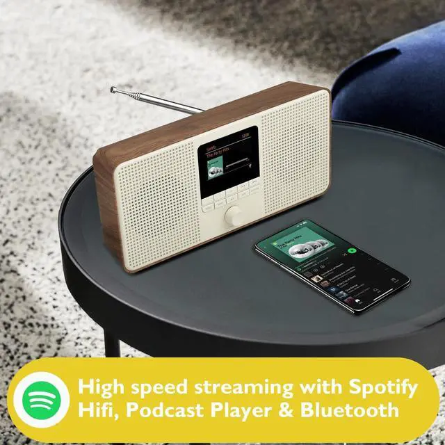 - This flagship Internet Radio Players support the very latest streaming services such as Internet Radio, Podcast, Spotify. Enjoy over 30, 000 internet radio and podcast from around world. And built-in Spotify Connect, enjoy listening to millions of music tracks from Spotify library. Experience a richer sound quality without audio compression, using your smartphone acting as a remote control. ^^ - Enjoy all of your favourite FM stations with superior quality sound. Easy set-up and quick Auto-Scan to search your favorite stations quickly, with 20 stations Presets to store or recall your favourite radio stations.