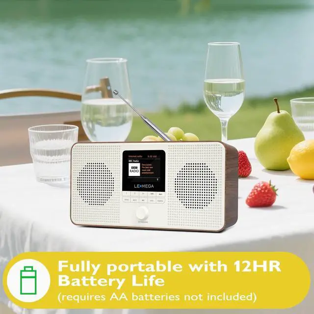 ^^ - Acoustically tuned enclosure equipped with 2 x 2.5 inch full range drivers, delivering a powerful and immersive stereo sound. Enjoy your favourite tunes and podcasts from your smartphone or tablet via built - in Bluetooth. ^^ - With the option of Mains power or AA Battery (No included) makes the IR4S fully portable. Comes With US Mains Plug and usb cord. Its compact and lightweight design, wherever you like to enjoy your music, the Portable Digital Radio is ready to play all your favourite stations. ^^ - Dual independent alarms to schedule your kitchen/alarms/snooze/sleep timer, smart setting for working days or weekend with either music or buzzer, automatically sets time and date update from Interent or FM stations.