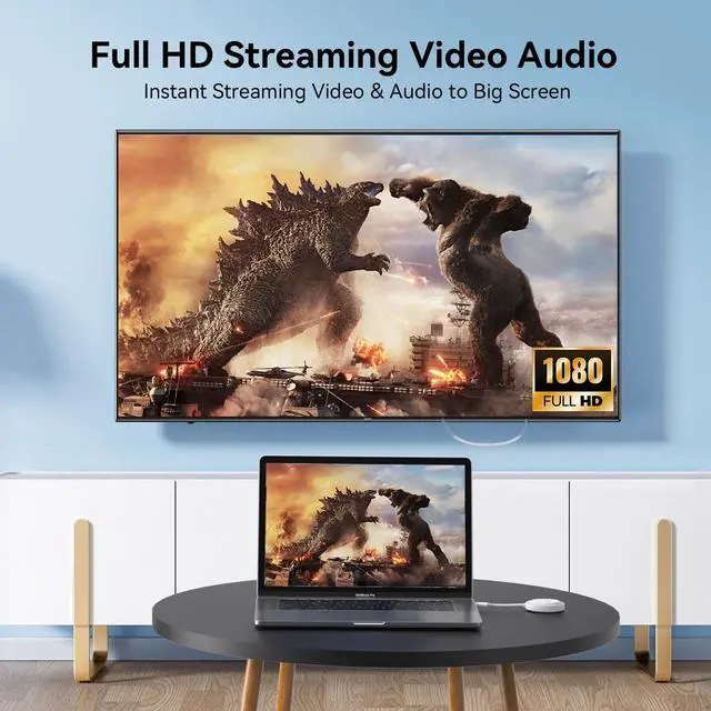 Ultra High-Definition Clarity: Experience 1080P@60Hz Crystal-Clear Visuals with our Ultra High-Definition Clarity wireless HDMI display dongle adapter. Boasting a high-performance chip guarantees no compression or artifacts. Enjoy a seamless viewing experience, whether youre sharing presentations, Watching movies, or teaching